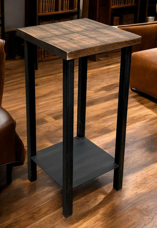 Black/Stain Square Iron Drink Table with Feather Tree Accent and Wood Top