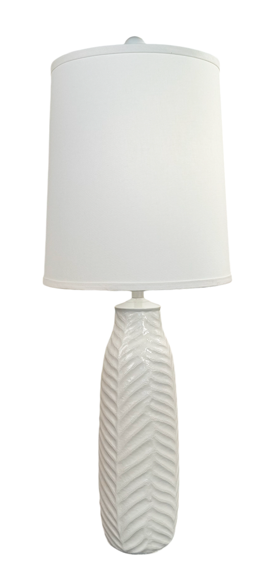 High Gloss Ivory Tall Indented Leaf Table Lamp