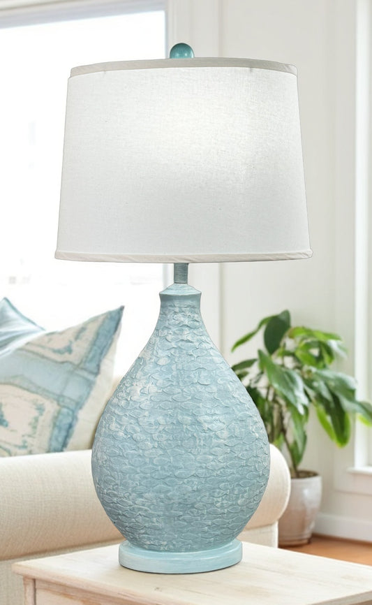 Weathered Atlantic Grey Oval Table Lamp with Fish Pattern