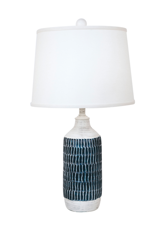 Cottage/Navy Round Pot with Irregular Rectangle Accent