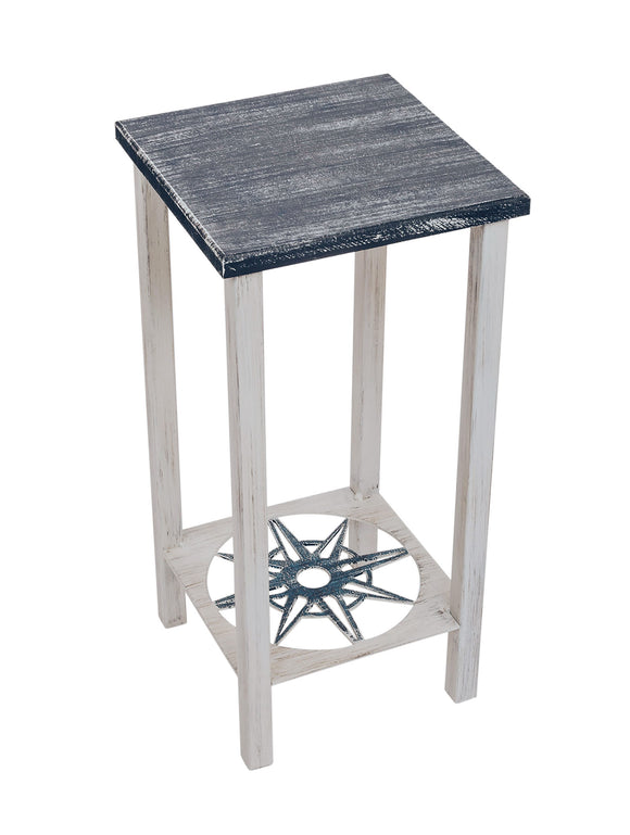 Cottage/Navy Square Iron Drink Table with Nautical Compass Accent and Wood Top