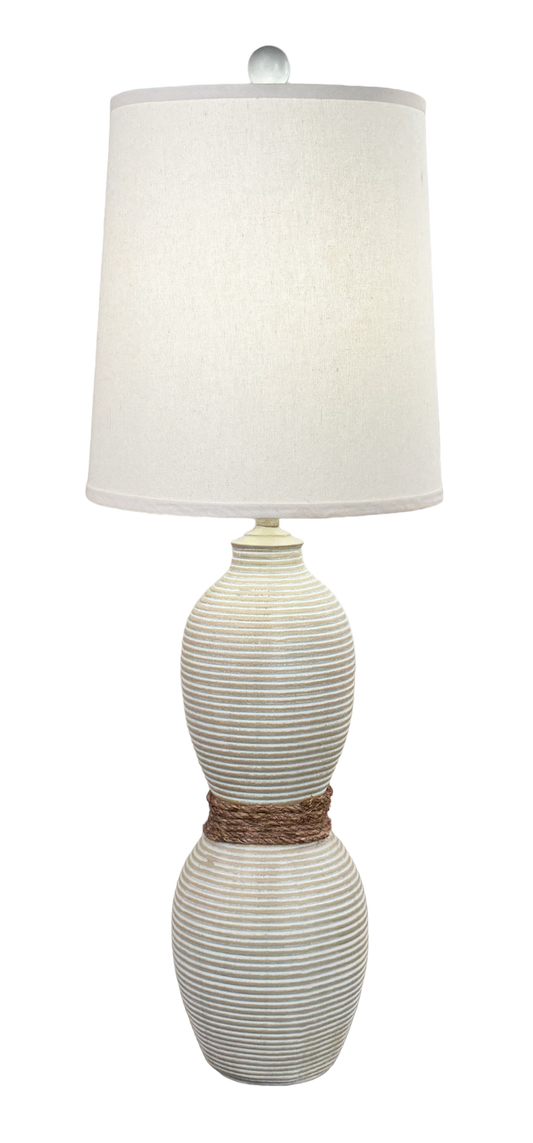 White Washed Seagrass Round Pot w/ Oval Indentions Table Lamp