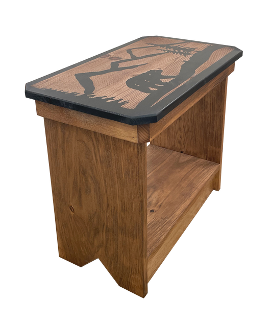 Burnt Sienna/Rough Sawn Bears Roasting Marshmallow Rectangle Side Table