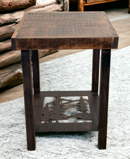 Burnt Sienna/Rough Sawn Square Iron End Table with Tree Scene Accent -23