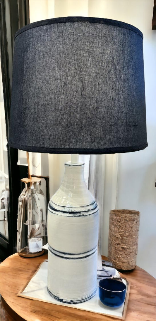 Farmhouse/Navy Sectioned Vase Table Lamp w/ Navy Shade