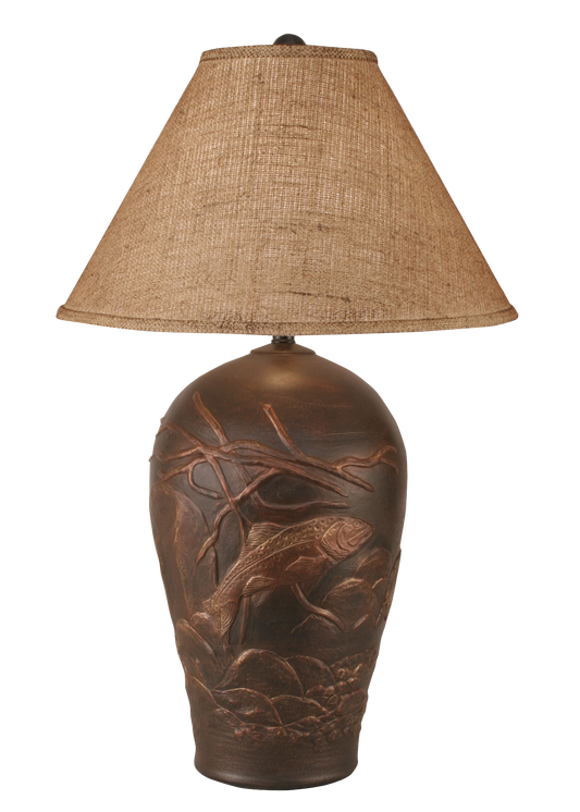 Burnt Sienna Pine Cone Table Lamp- Burlap Shade
