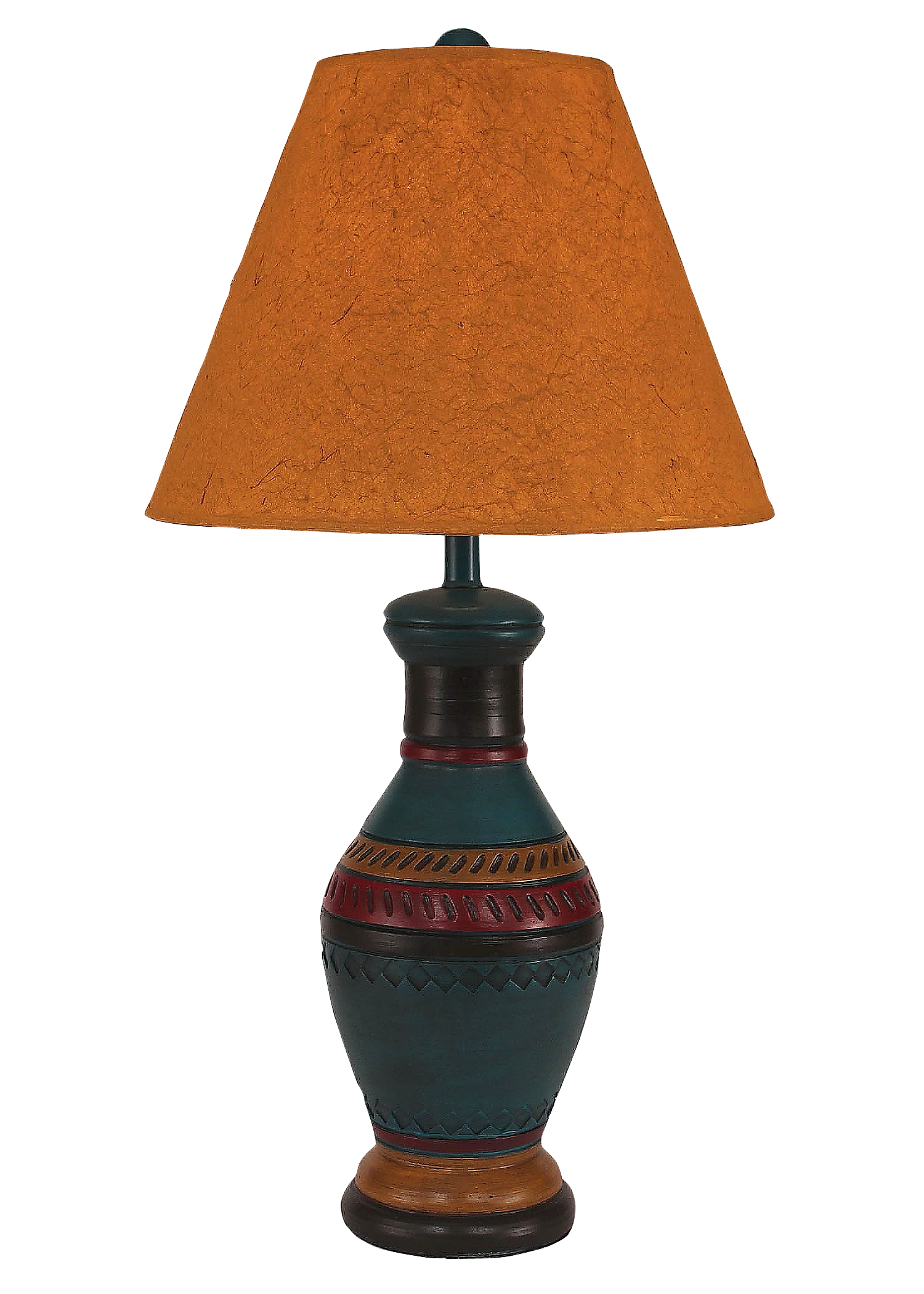 Southwest Pot w/Rhombus Accent Ht:28.5 Finish:Sante Fe Shade:SD-732 Size:7x15x11 Finial:Matching Wooden Ball