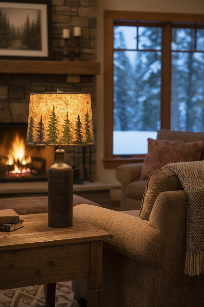 Dark Brown Streak Tall Jug Table Lamp with Tree Grove Shade