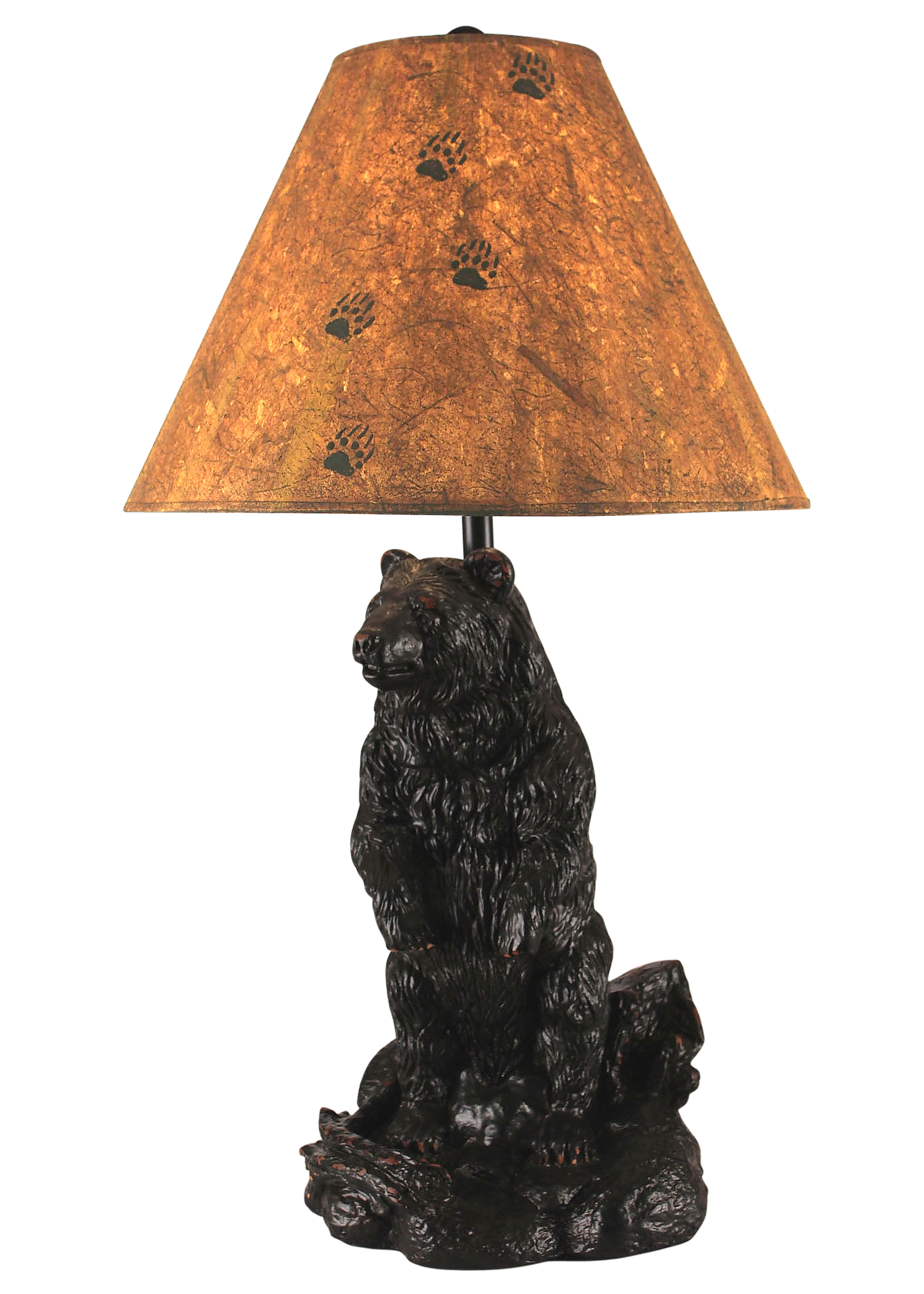 Standing Bear Pot Ht:32 Finish:Distressed Black Shade:WC-514 Size:7x18x13 Finial:Matching Wooden Ball